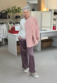Sportswear im Alltag, schlichte unaufgeregte Jogginghose kombiniert mit Strickpulli, Lederjacke oder klassischen Oberteilen Jacke oder Mantel.